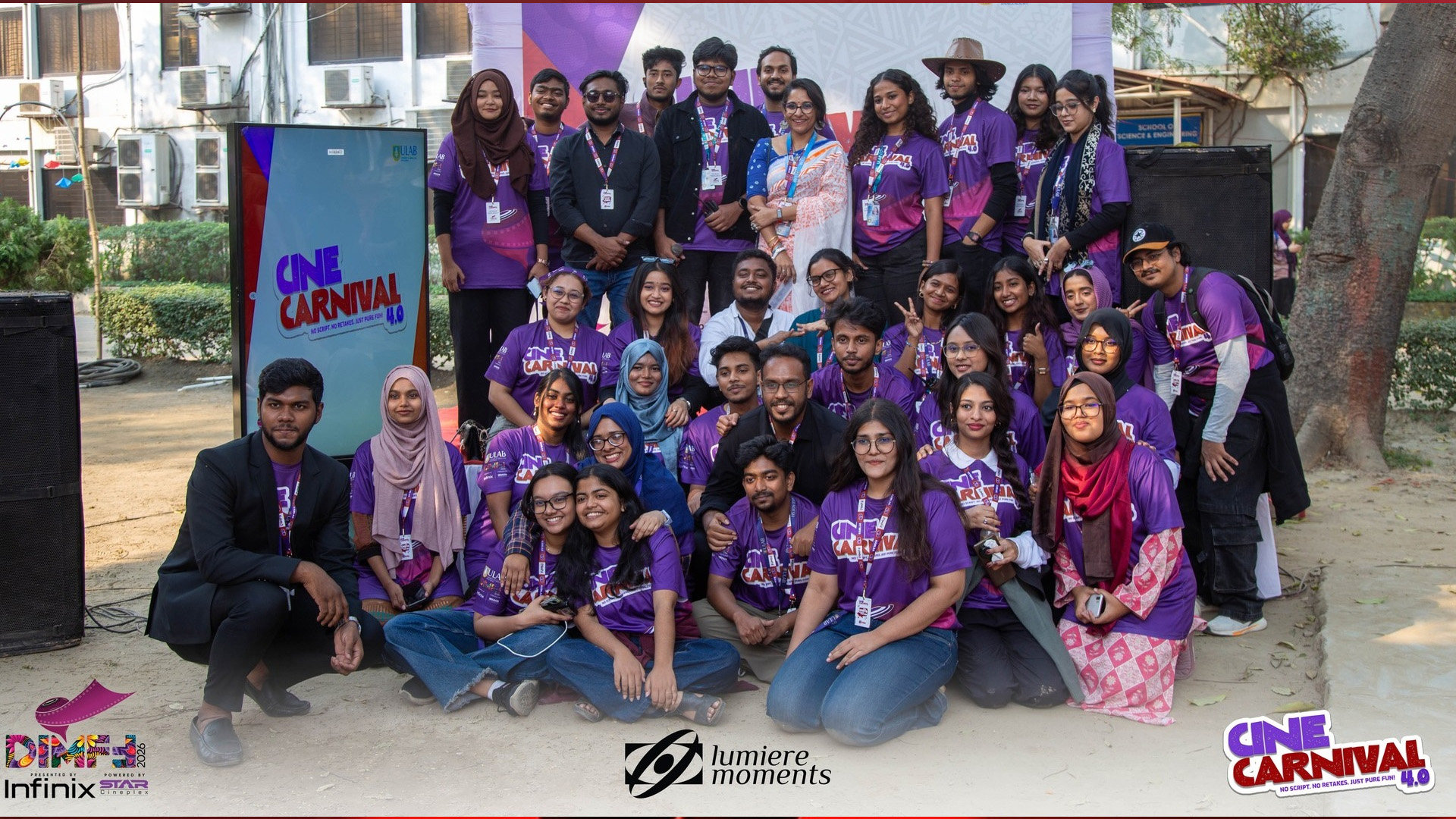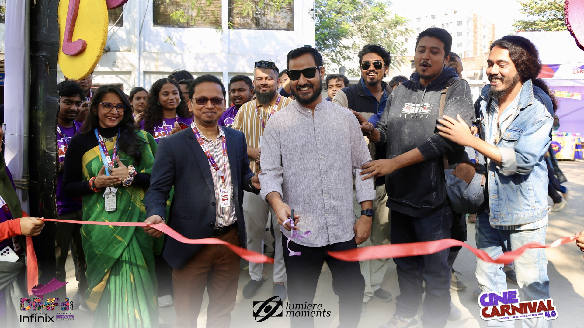 The much-anticipated Cine Carnival 3.0, organized by the Dhaka International Mobile Film Festival (DIMFF), opened its doors on December 17th at the ULAB Permanent Campus. This vibrant three-day celebration of film, creativity, and fun started with an electrifying atmosphere, drawing film enthusiasts, students, and families alike.