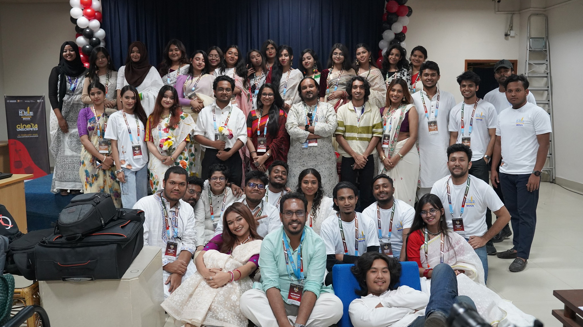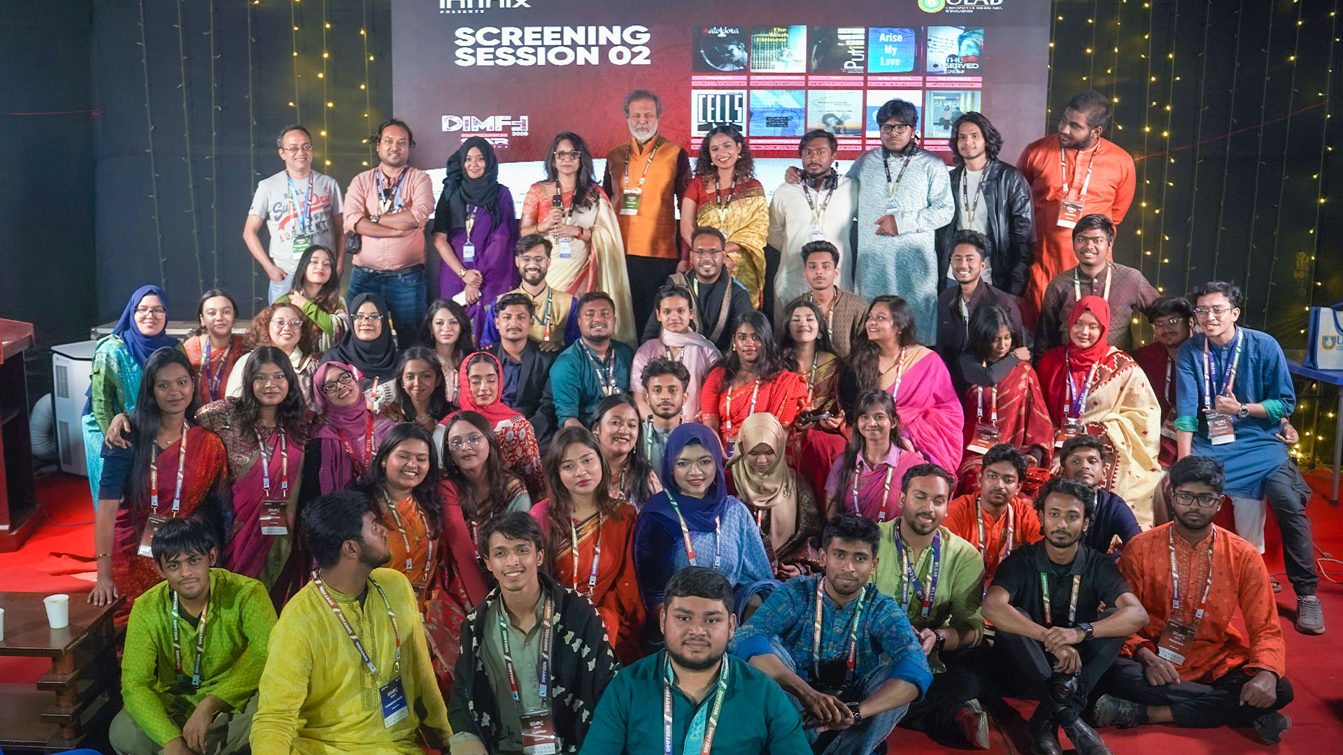 Students from various departments of ULAB are organizing the festival. Throughout the year, DIMFF conducted mobile filmmaking workshops in partnership with UNHCR, where students from different universities participated. Out of 90 team applications, five teams were selected for the final stage of the workshop. Participants included students from AIUB, DIU, BRAC University, ULAB, and Shanto-Mariam University of Creative Technology. The workshop concluded with a Memorandum of Understanding (MoU) between DIMFF and UNHCR, marking a significant milestone in their collaboration.